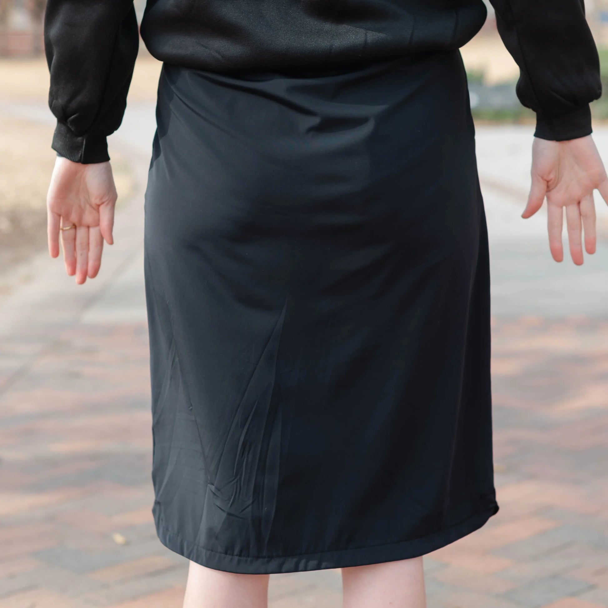- Curved hem with mini-slit